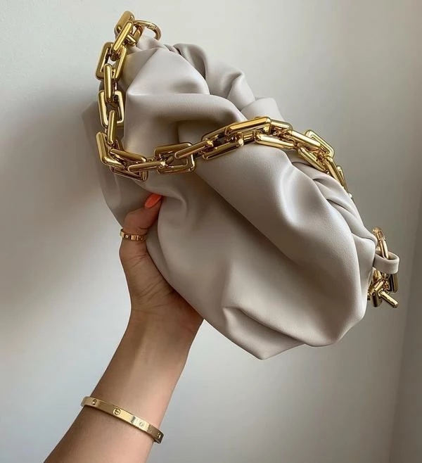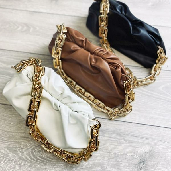 The iconic Luxe “Sienna” bag is made from vegan PU leather, crafted with a lightweight gold look chain handle atop a delicate clutch bag with magnetic closure.