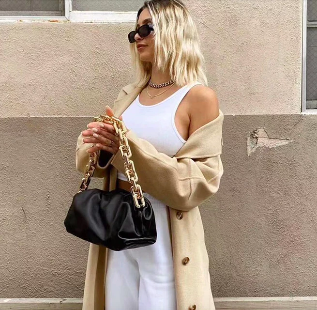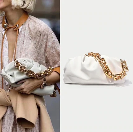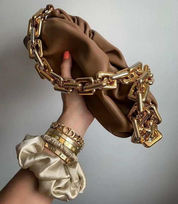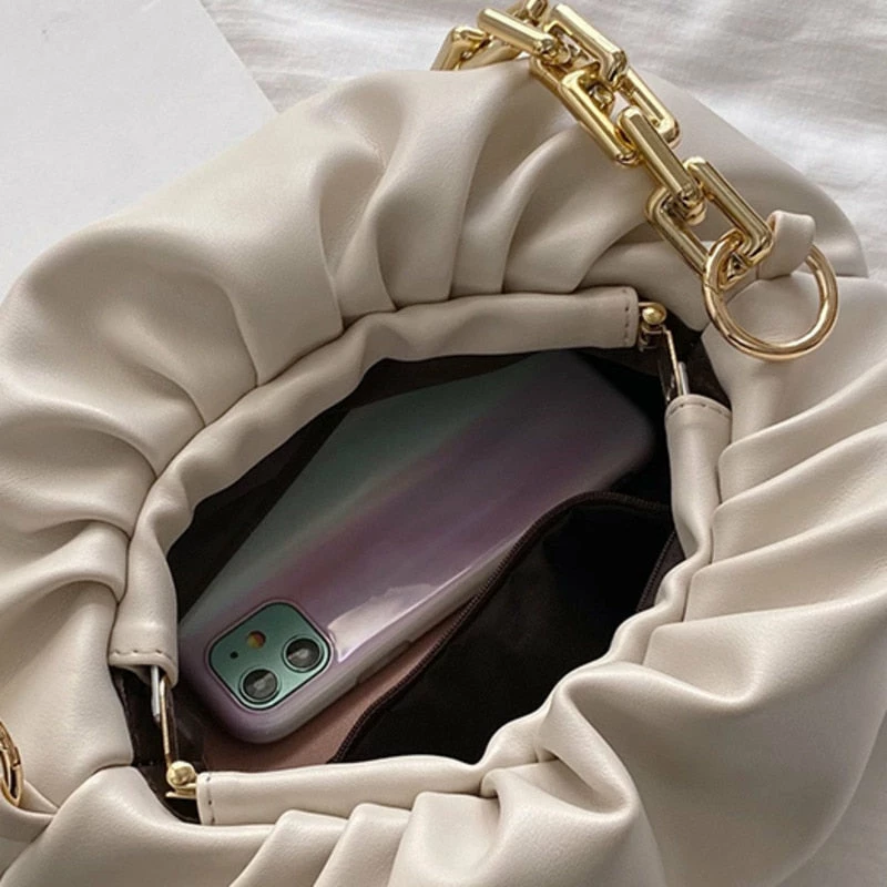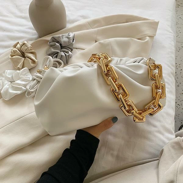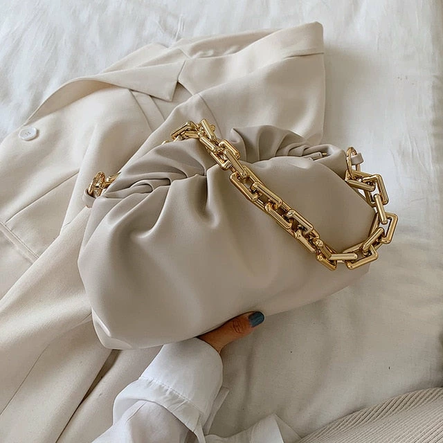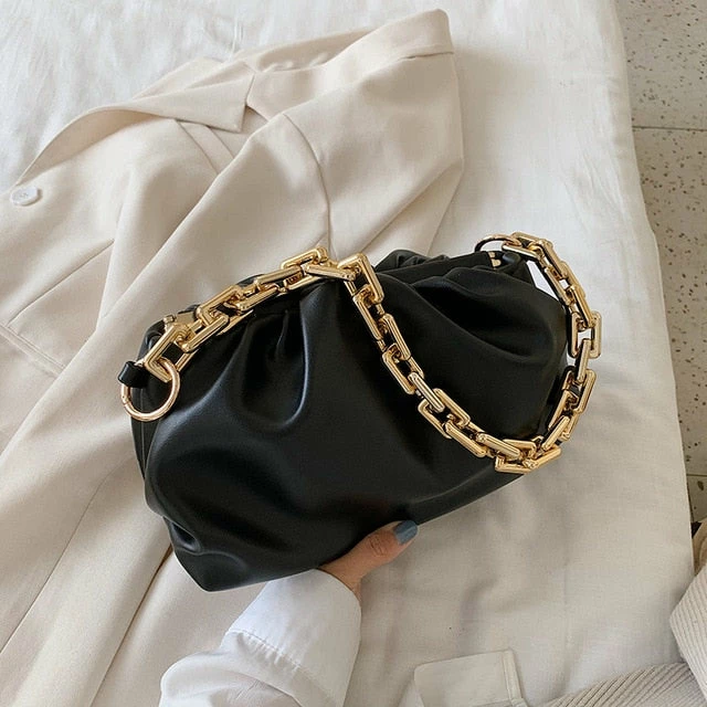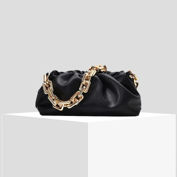 The iconic Luxe “Sienna” bag is made from vegan PU leather, crafted with a lightweight gold look chain handle atop a delicate clutch bag with magnetic closure.