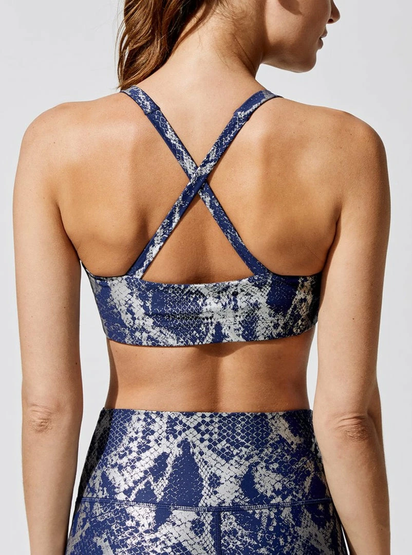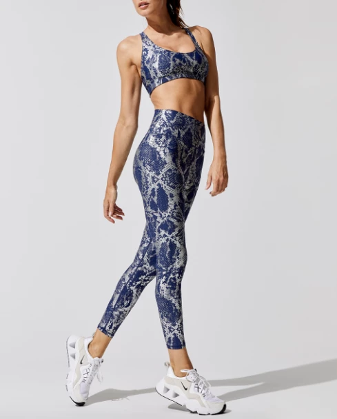 Slide your way to the gym looking hot in our metallic snake print leggings & sports bra.