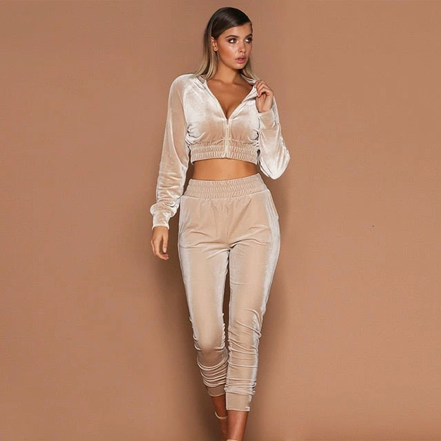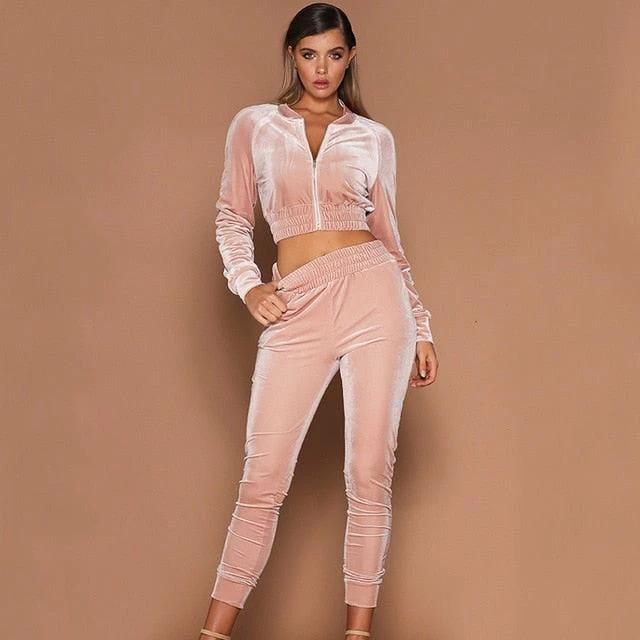 Luxe “Paris” Velour Tracksuit | Beige – Pink – Black