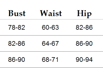 See Bust/Waist/Hip measurements in images.
