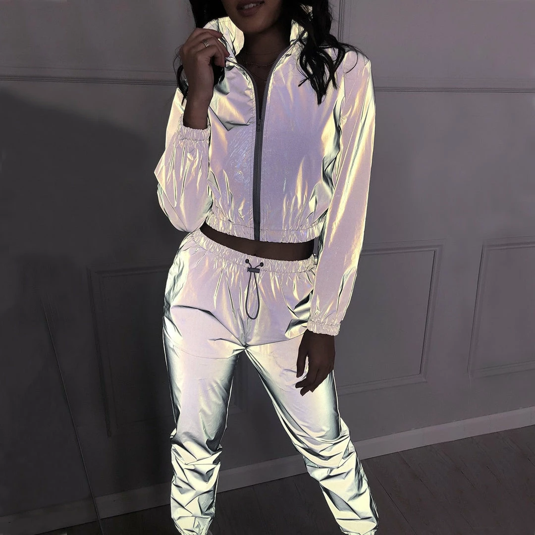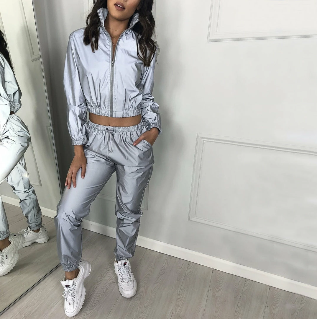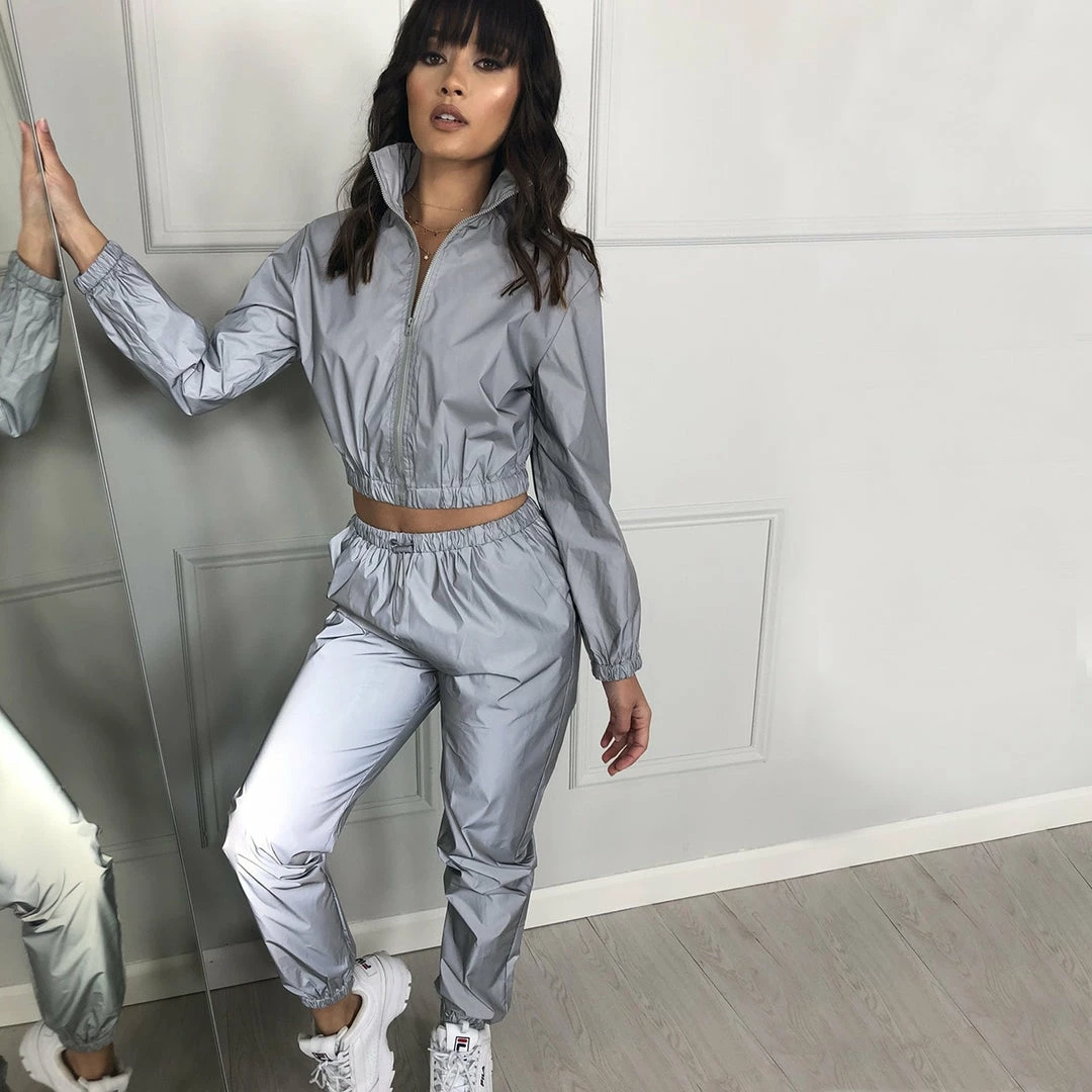 Luxe Activewear Grey Reflective Two Piece Tracksuit