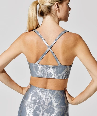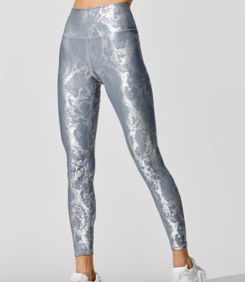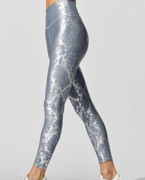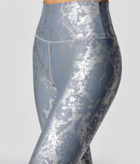 Slide your way to the gym looking hot in our metallic snake print leggings & sports bra.
