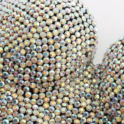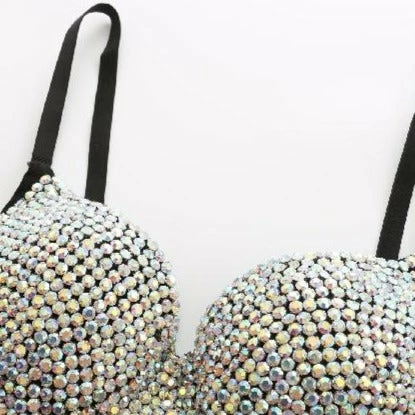 Rhinestone colour choice of AB (Multicoloured appearance) or Silver, fabric colour of your choice of Black, White, or Nude