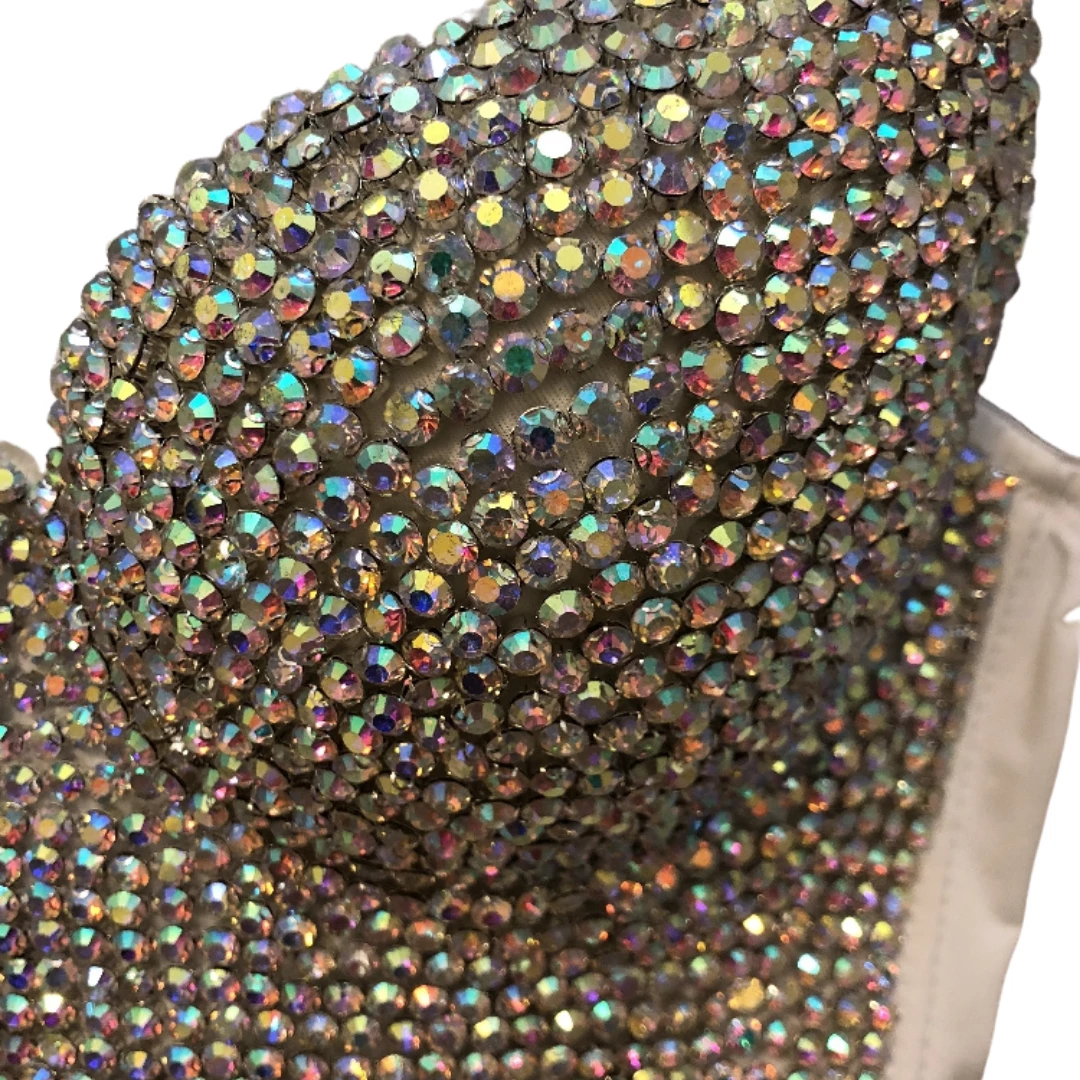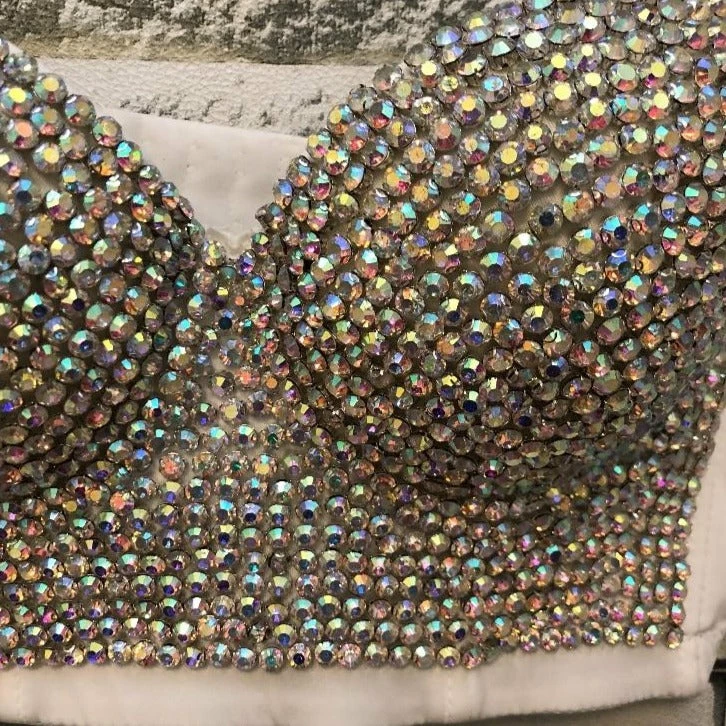 Rhinestone colour choice of AB (Multicoloured appearance) or Silver, fabric colour of your choice of Black, White, or Nude