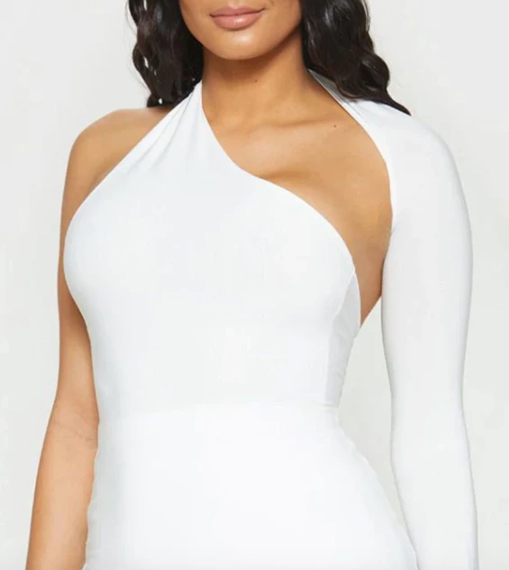 Luxe Festival Wear Tops Luxe Wrap Sleeve Asymmetrical Bodysuit Nude